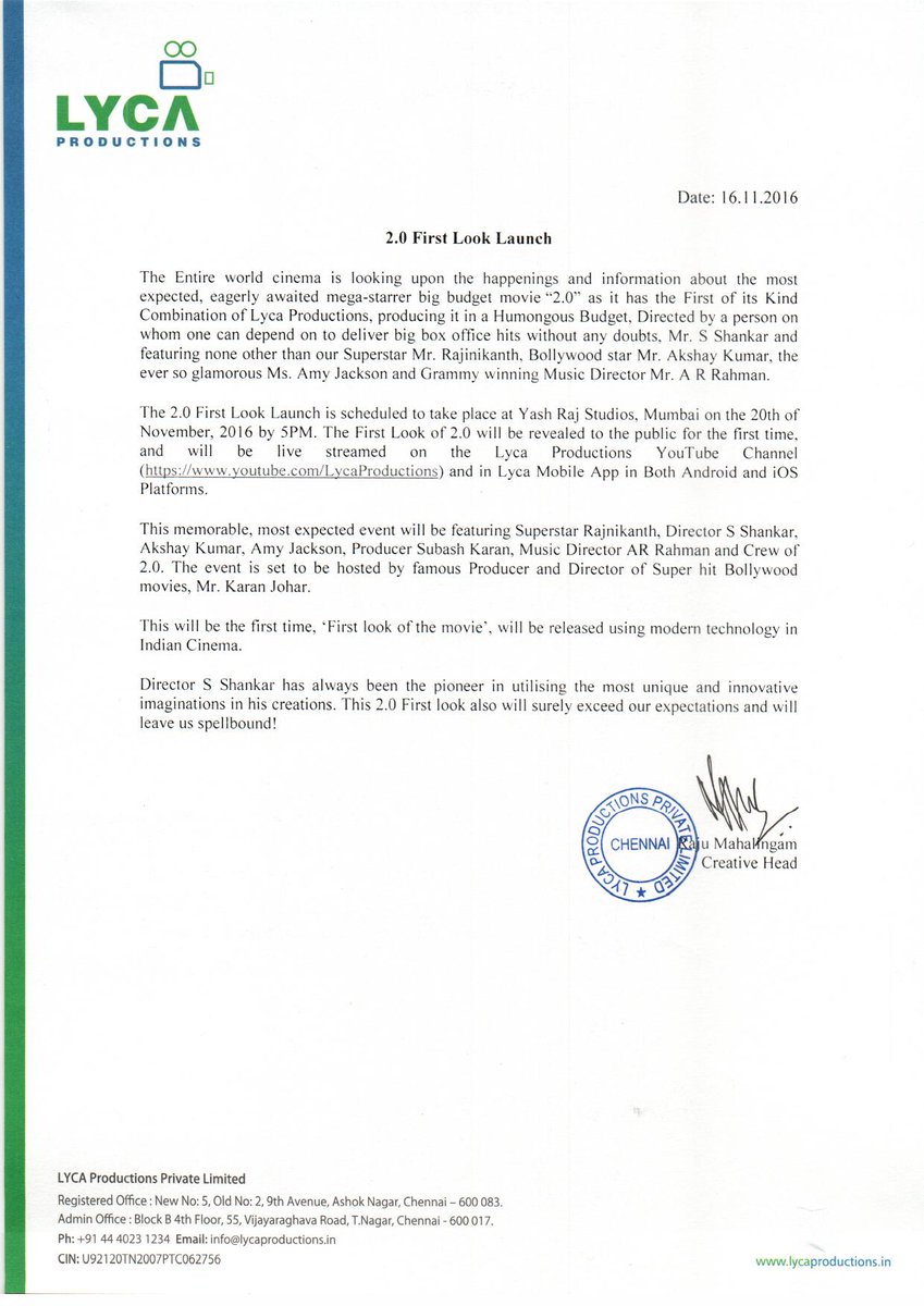 In a press announcement made by Lyca Productions (producers of 2.0) some interesting facts have been revealed by the makers of this Rajinikanth starrer sequel. Here's what we need to know: