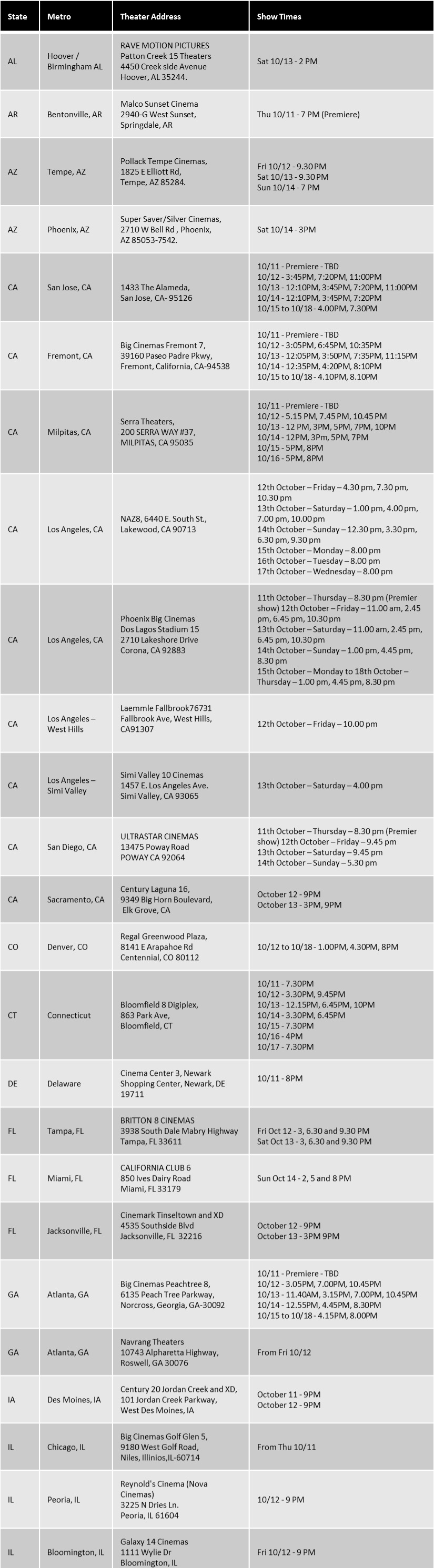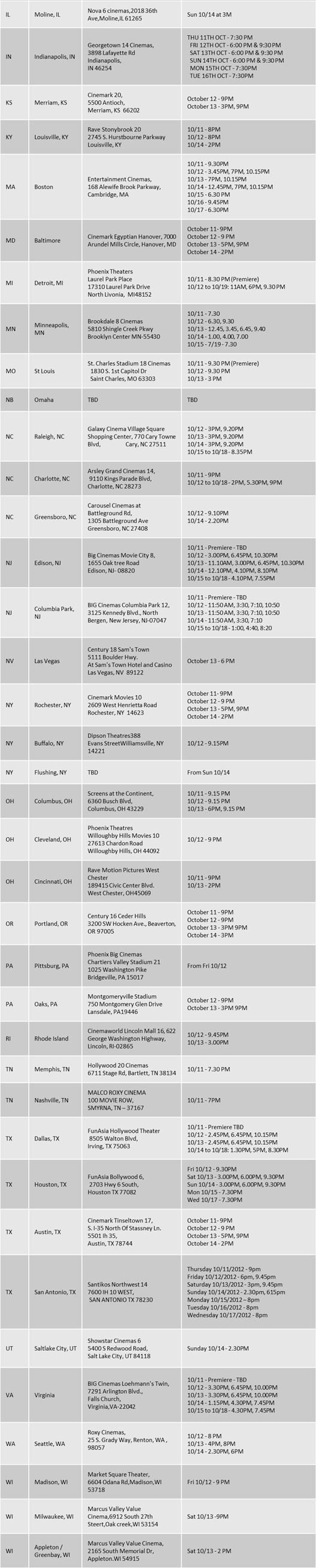 Maatran releases in 63 centers in the US