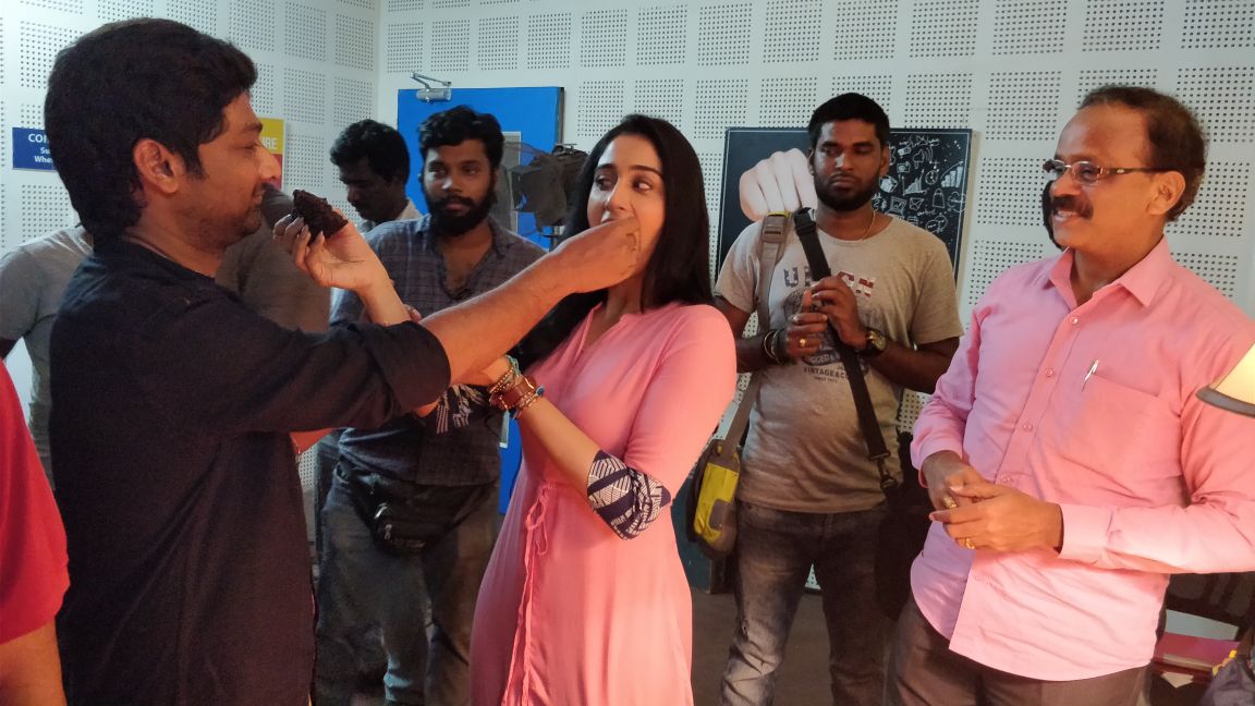 The film shooting is in progress. Regina Cassandra has completed her talkie portion and only songs are left to be shot. She will join the team back again for the song shoot. The team had arranged for a cake cutting ceremony after the wrapping up of the shoot thanking Regina for her contribution.