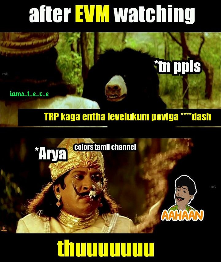 — JOSE (@josecy8606) April 17, 2018#EngaVeetuMapillai #ColorsTamil #Arya #Sangeetha Sivaji da nadipa paathu irikiran, Kamal da nadipa paathu irikiran, Ungalwala Madhiri oru Nadipa Vaalkela Mudhal Muraya Paakuran, Hatsoff