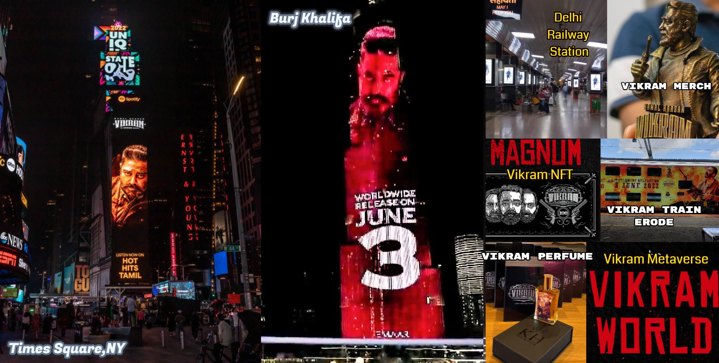 Previously the film's trailer was screened on the Burj Khalifa in Dubai, Vikram's posters were designed on Southern Railways' compartments, this movie-specific NFTs and metaverse were introduced at Cannes, perfumes, memorabilia were dropped as part of the film's official merchandise, etc.