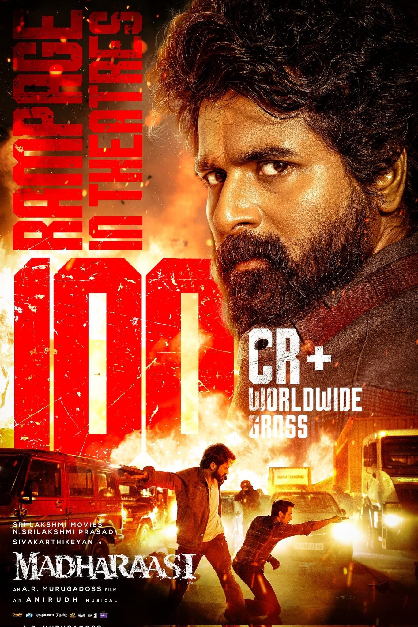In just 2 weeks of theatrical run, AR Murugadoss directed Madharaasi starring Sivakarthikeyan in the lead has crossed Rs. 100 Cr. in gross collections worldwide. Sri Lakshmi Movies, the makers behind Madharaasi made the box-office announcement with a new poster release.