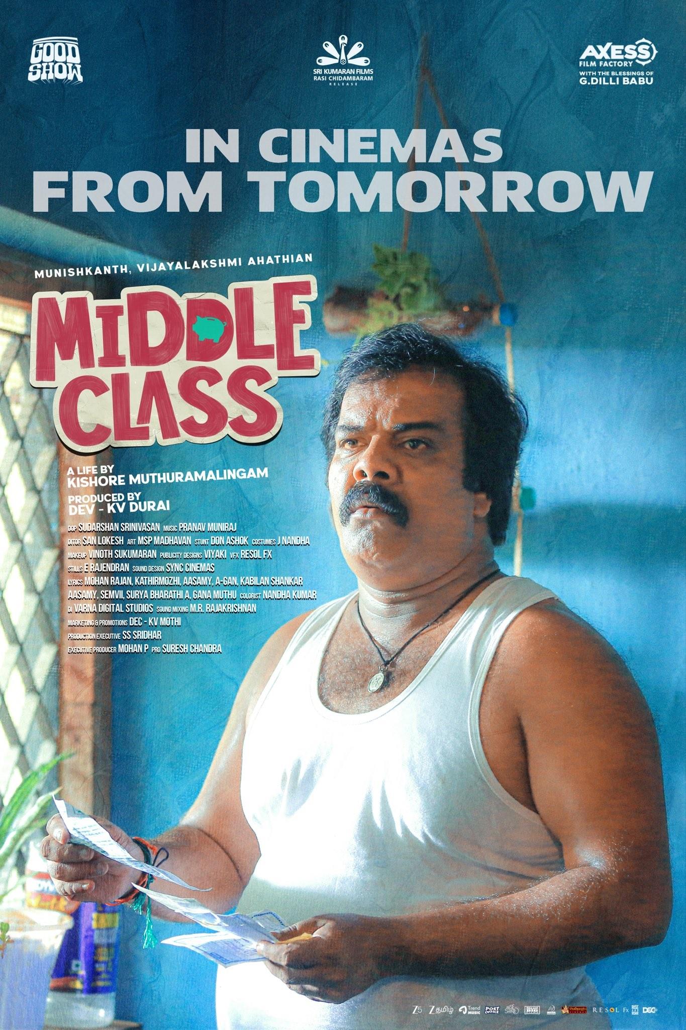 Middle Class film looks poised to celebrate the absurdity of everyday life, and can be watched with Sudarshan Srinivasan's cinematography, San Lokesh's edits, MSP Madhavan's art, and Don Ashok's stunts. Middle Class also has VFX by Resol FX, and Publicity designs by Viyaki.