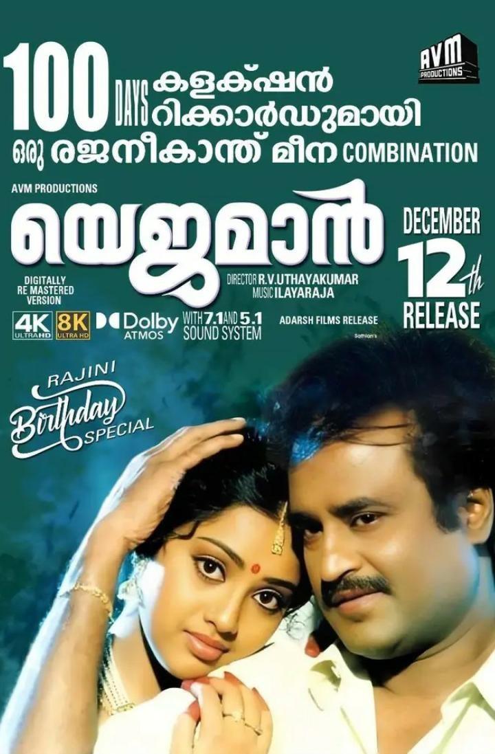AVM productions did initially announce the re-release of Yajaman in Tamil Nadu as well, but with Padayappa re-releasing hitting theater screens, and the recent December 4 passing away of AVM producer M Saravanan, it remains unclear of Yajaman will re-release in TN movie theaters.