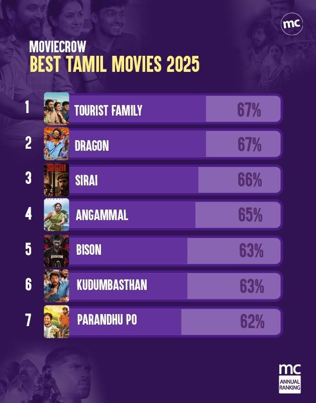 Organic performances from the entire cast lead by Sasikumar, and Simran were significant add-ons, and with its honest core, Tourist Family comfortably takes the top spot of 2025 in MovieCrow Annual rankings.