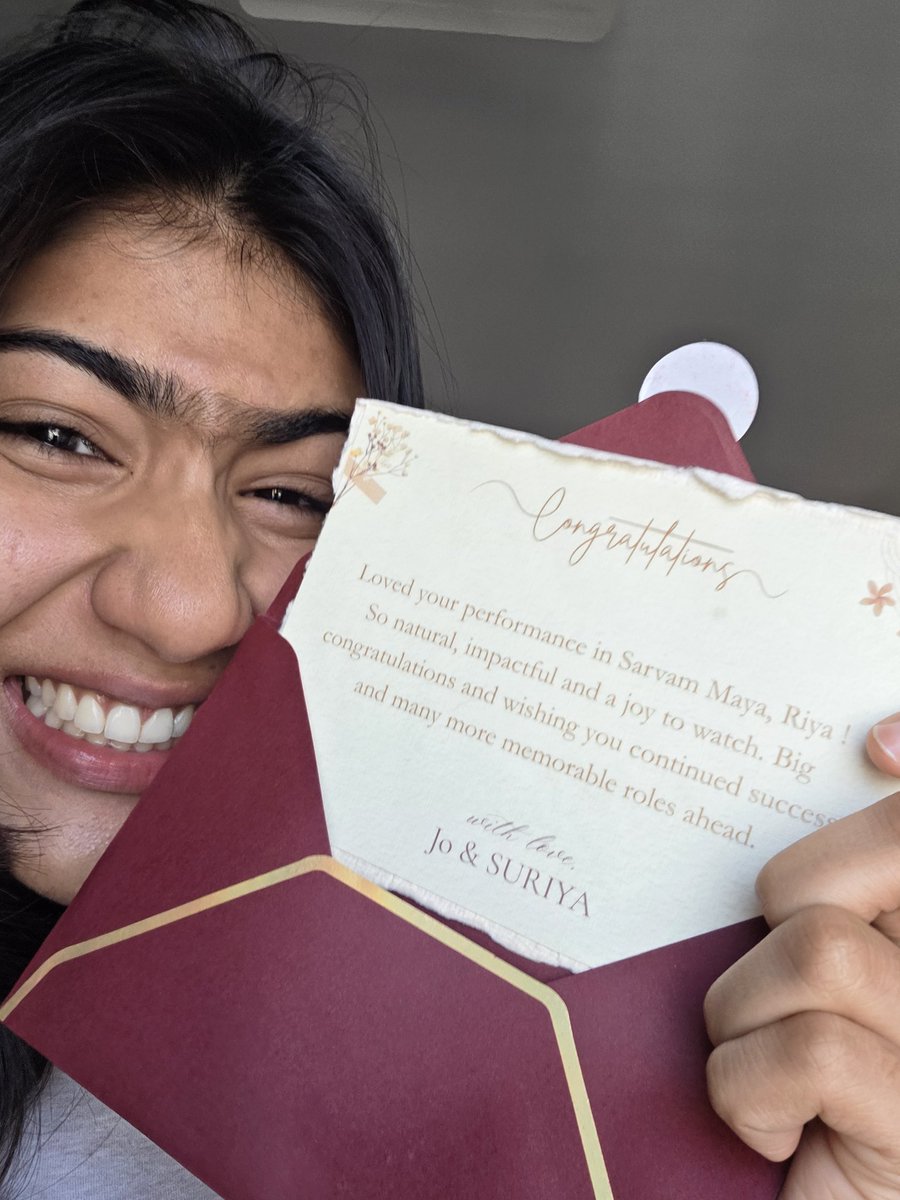 Adding to the recognition, Riya recently revealed that actors Suriya and Jyotika sent her a special hamper along with a handwritten note appreciating her performance, calling it “natural, impactful and a joy to watch.”